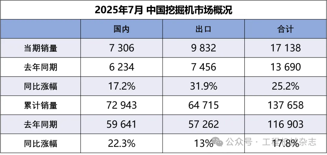 日前,中國(guó)工程機(jī)械工業(yè)協(xié)會(huì)發(fā)布數(shù)據(jù),7月份,國(guó)內(nèi)挖掘機(jī)主要制造企業(yè)銷(xiāo)售各類(lèi)挖掘機(jī)17138臺(tái),同比增長(zhǎng)25.2%。其中國(guó)內(nèi)銷(xiāo)量7306臺(tái),同比增長(zhǎng)17.2%,出口量9832臺(tái),同比增長(zhǎng)31.9%,挖掘機(jī)月平均工作時(shí)長(zhǎng)為66.1小時(shí),月…......